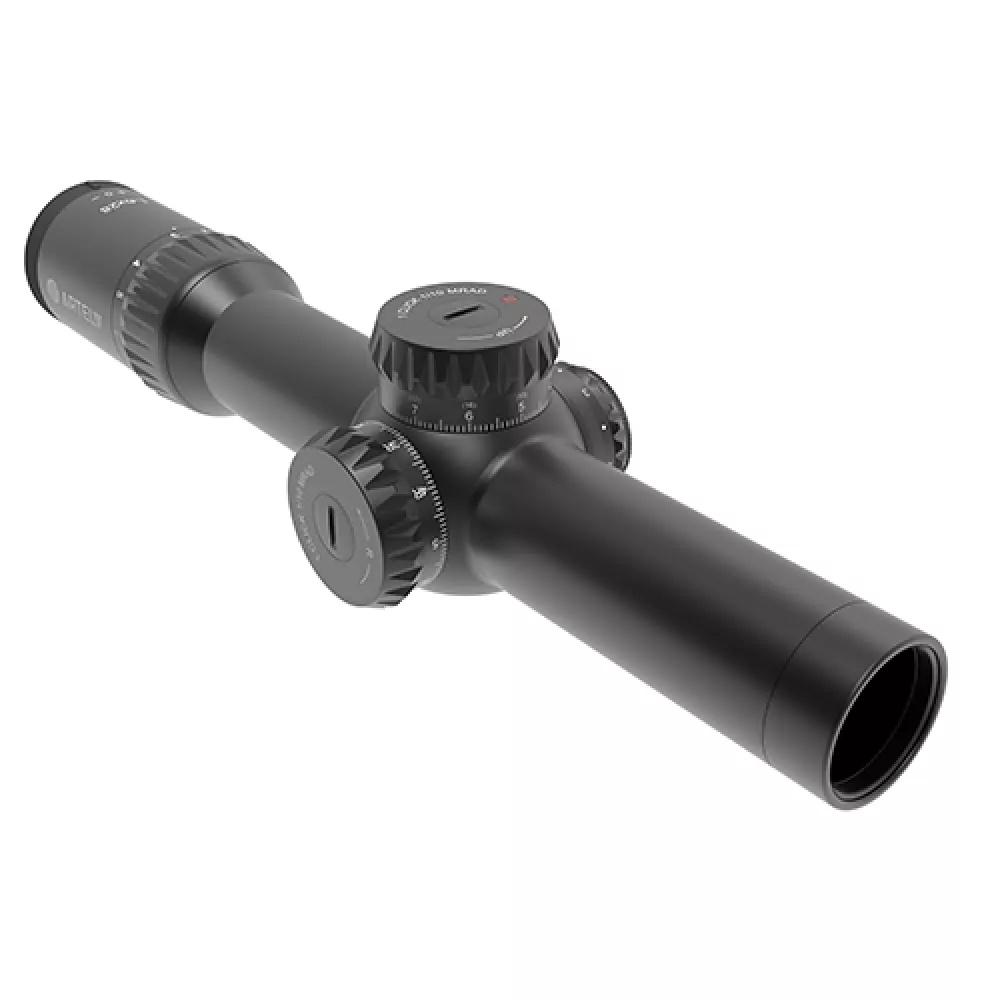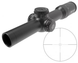 Охотничий прицел имеет информативную прицельную сетку AM7 с удобной вертикальной и горизонтальной разметкой для ввода поправок прямо в ходе стрельбы. Сетка расположена в первой фокальной плоскости (FFP) и изменяет свой масштаб пропорционально установленной кратности. Прерывистая окружность вокруг прицельной марки позволяет быстро захватывать крупные цели и осуществлять выстрелы «навскидку».