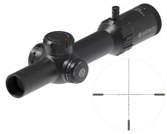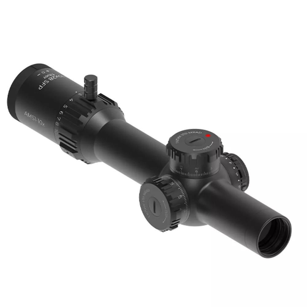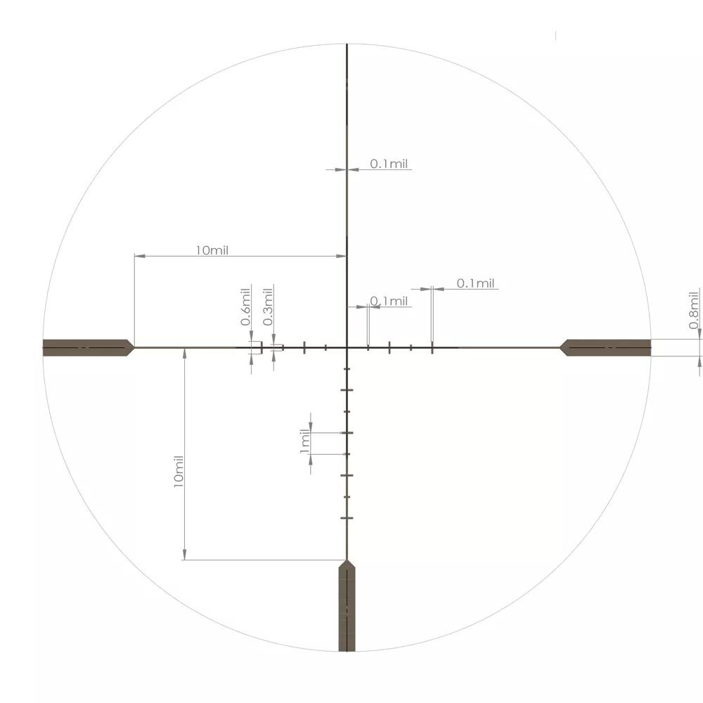 Прицельная сетка AMS1-10x представляет собой классическое перекрестие с вертикальными и горизонтальными маркерами для ввода поправок. Располагаясь во второй фокальной плоскости, сетка сохраняет неизменные масштабы на всем диапазоне кратности и исключает перекрытие даже мелкомасштабных целей.