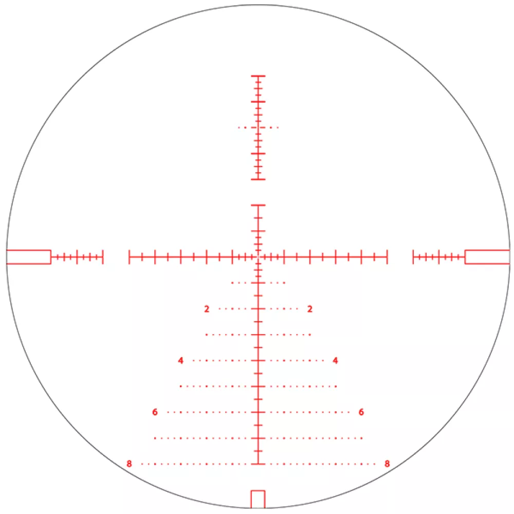 Баллистическая сетка AM2 позволяет вводить точные поправки по ветру и дальности на всем рабочем диапазоне прицела. Располагаясь в первой фокальной плоскости, сетка увеличивает свой масштаб при повышении кратности, что особенно удобно на дальних дистанциях.